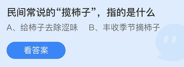 支付宝蚂蚁庄园小课10月21日的其中一个问题是:民间常说的“揽柿子”,指的是什么?这道题考查滴柿子有关的知识,下面一起来看一下蚂蚁庄园10月21日的正确答案吧。蚂蚁庄园小课堂10.21问题答案:问题: