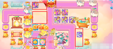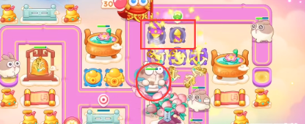 2、开始的时候放一个满级船锚开图,先打旁边桃子,桃子打完在建立一个船锚,之后打玉壶,玉壶打完建立一个元宝,老六兔出现的时候要记得锁定。